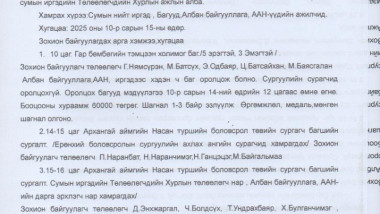СУМЫН ГЭМТ ХЭРГЭЭС УРЬДЧИЛАН СЭРГИЙЛЭХ АЖЛЫГ ЗОХИЦУУЛАХ САЛБАР ЗӨВЛӨЛ ХУРАЛДАЖ 2025 ОНЫ ҮЙЛ АЖИЛЛАГААНЫ ТӨЛӨВЛӨГӨӨГӨӨ ХЭЛЭЛЦЭН БАТАЛЛАА